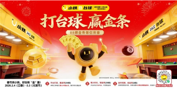 春節(jié)將至,小鐵自助臺球上線 “打臺球,贏金條” 新春主題活動,活動覆蓋 2026.2.4-3.3 新春全周期,設(shè)開臺抽獎、時長排名、抖音創(chuàng)意挑戰(zhàn)三大參與通道,人人可贏金條,打造公平有趣的互動體驗。